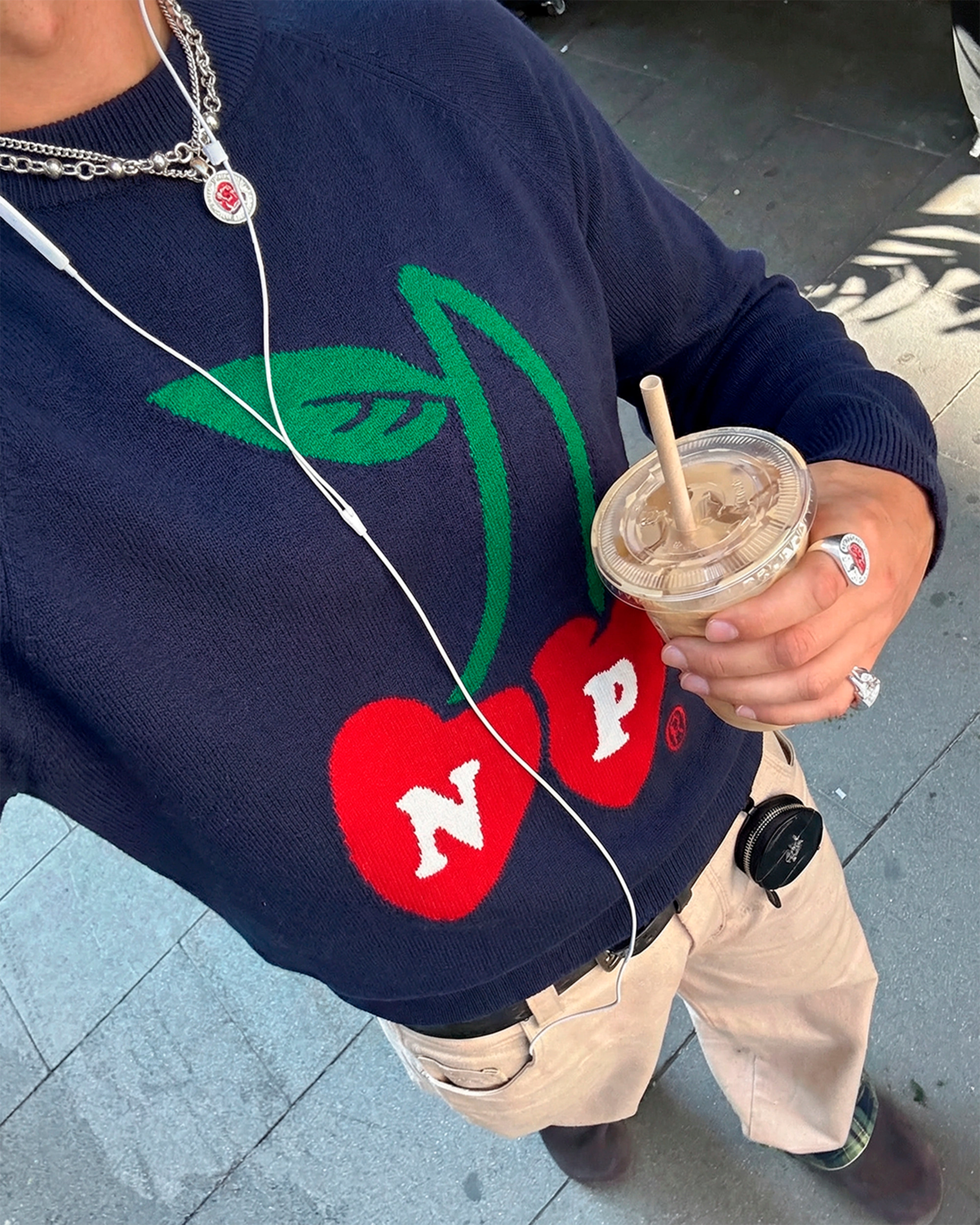 Knitted crewneck with intarsia graphic artwork
