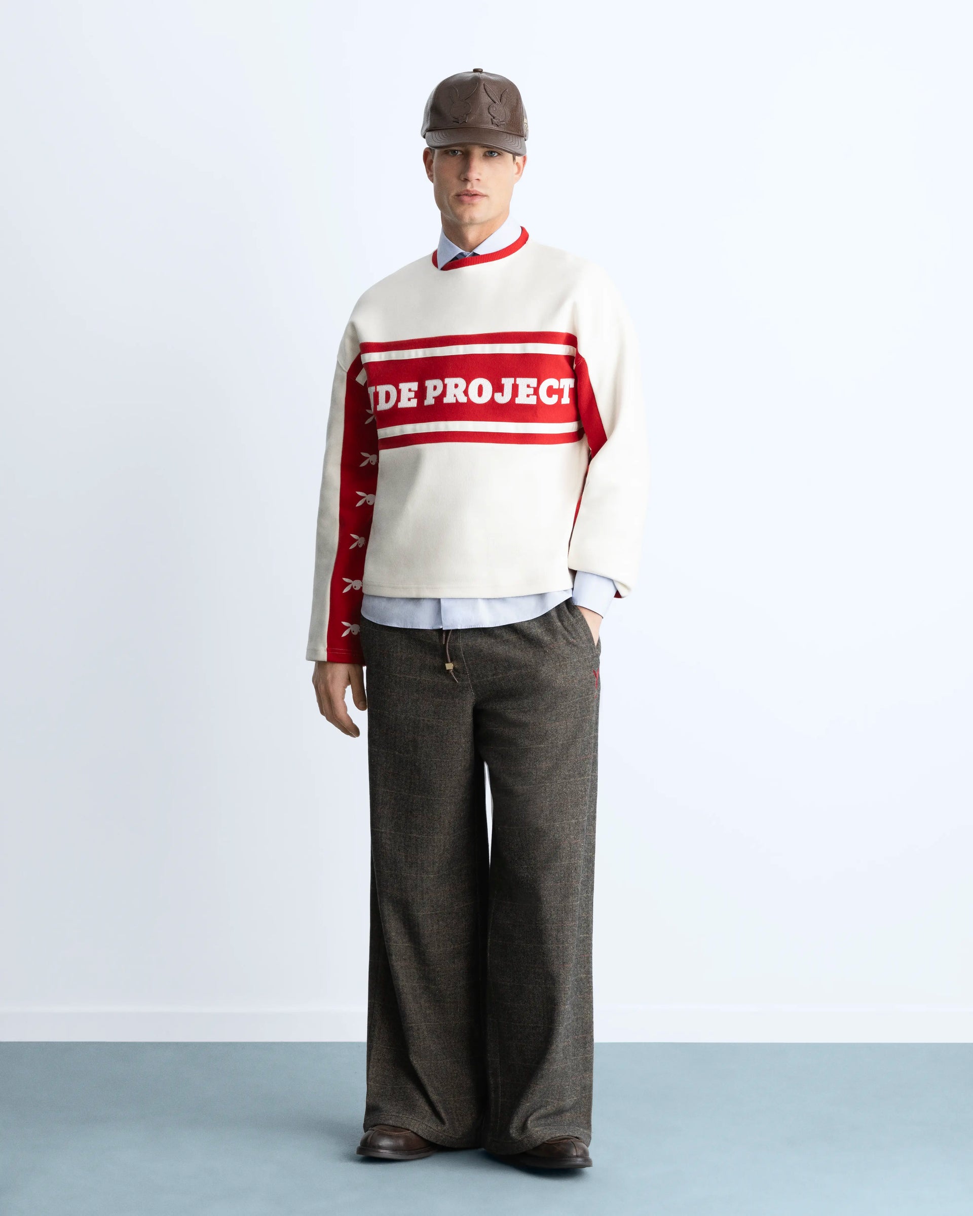 Colorblock crewneck with chaintitch and regular embroideries artworks