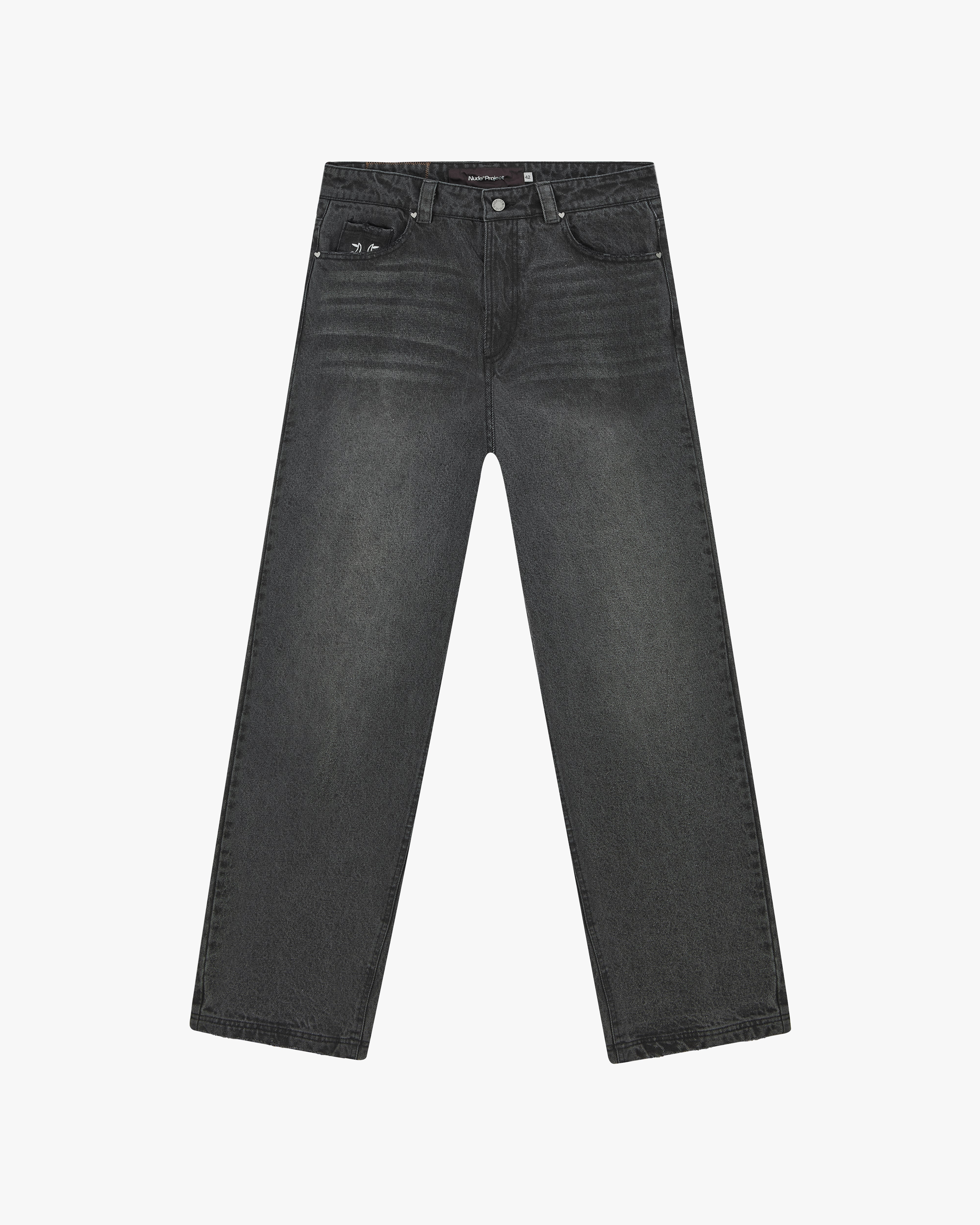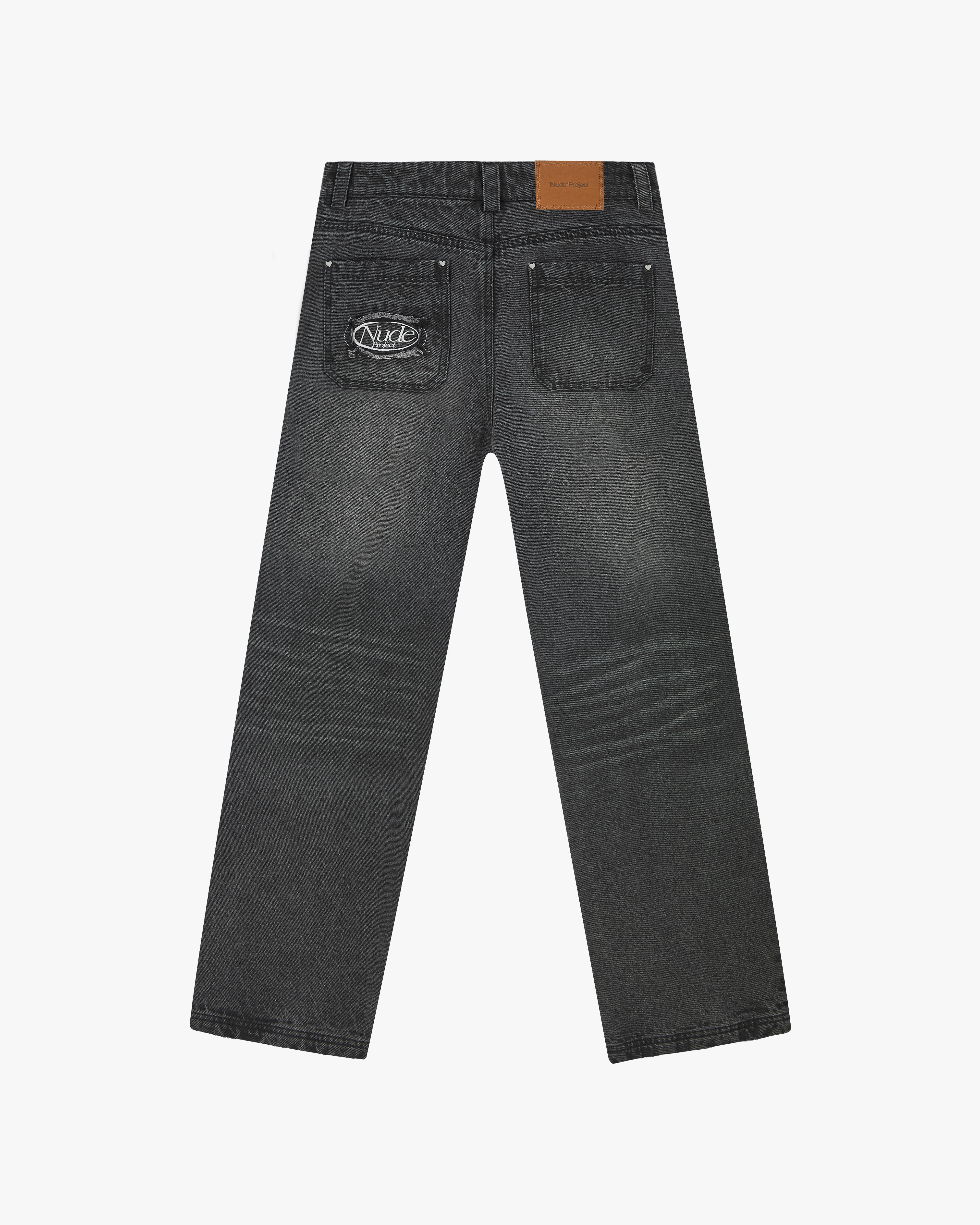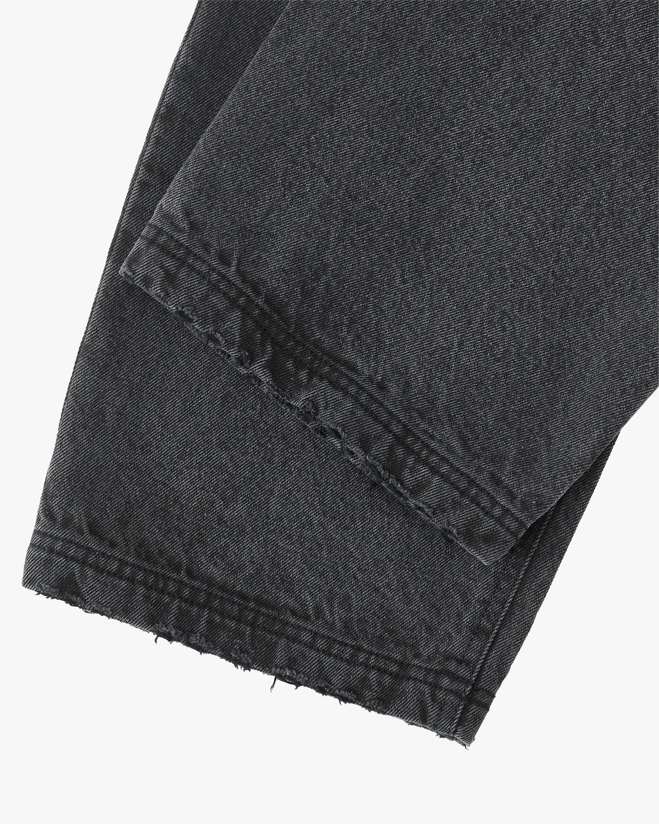 Custom metal trims distress effects on the hem special worn effect with metallic wash and whiskers