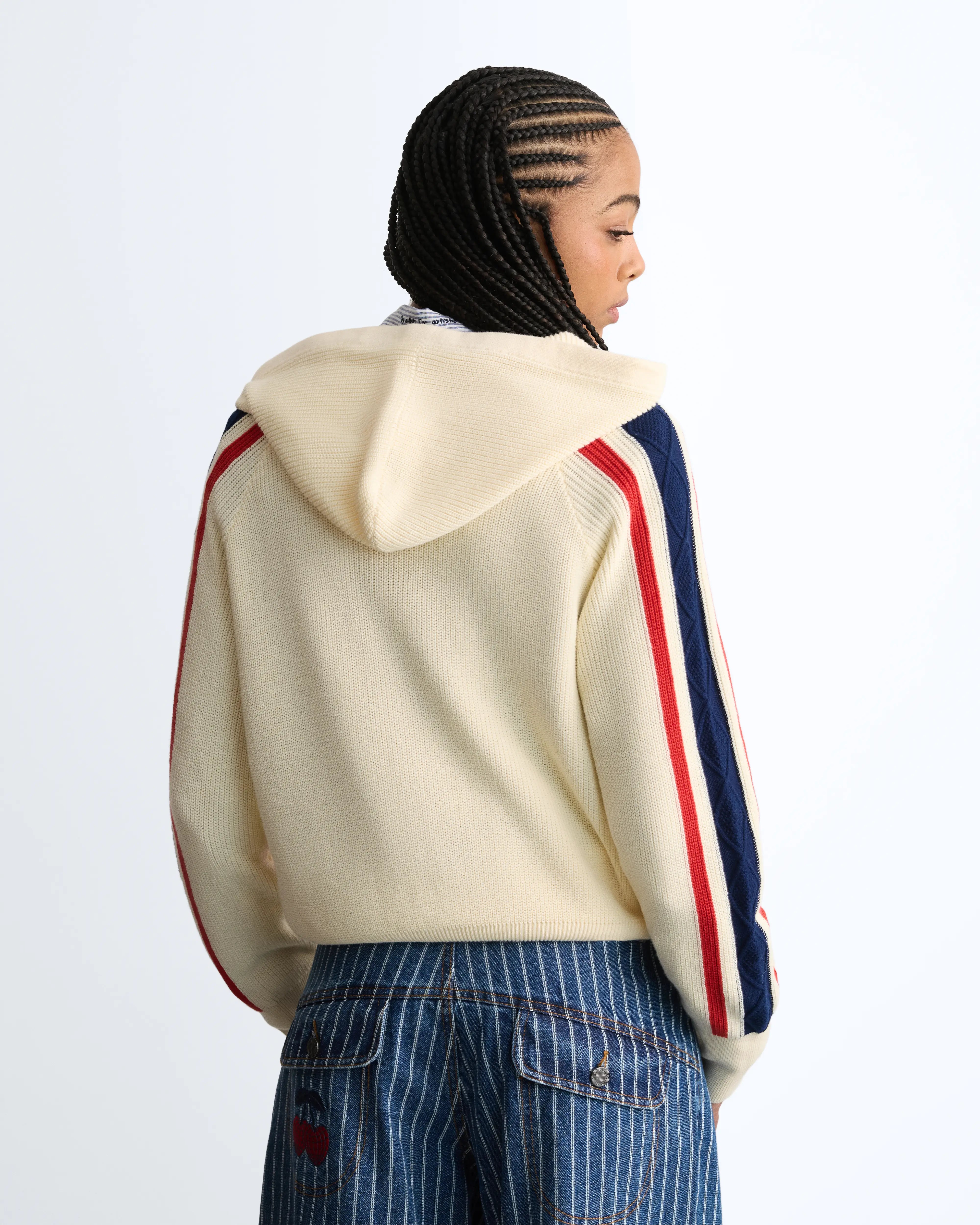 Monk Knit Zip-Up Hoodie Off-White