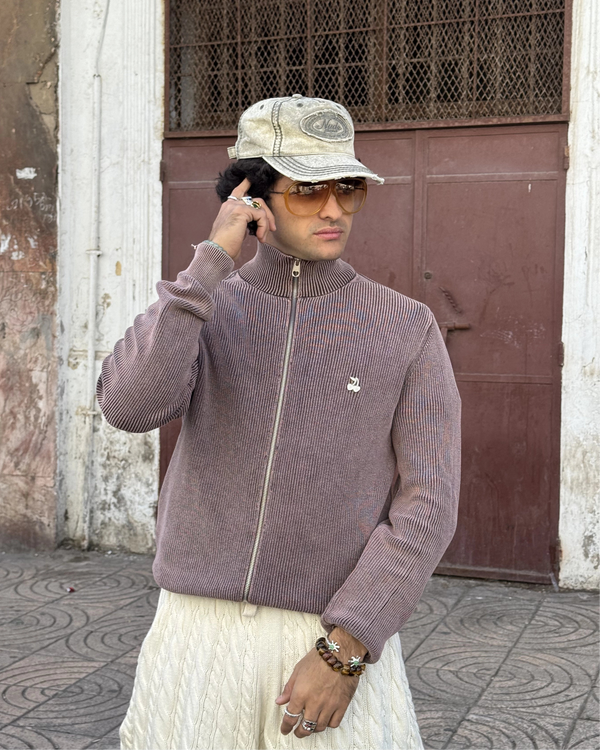Shady Knit Zip-Up Cardigan Brown