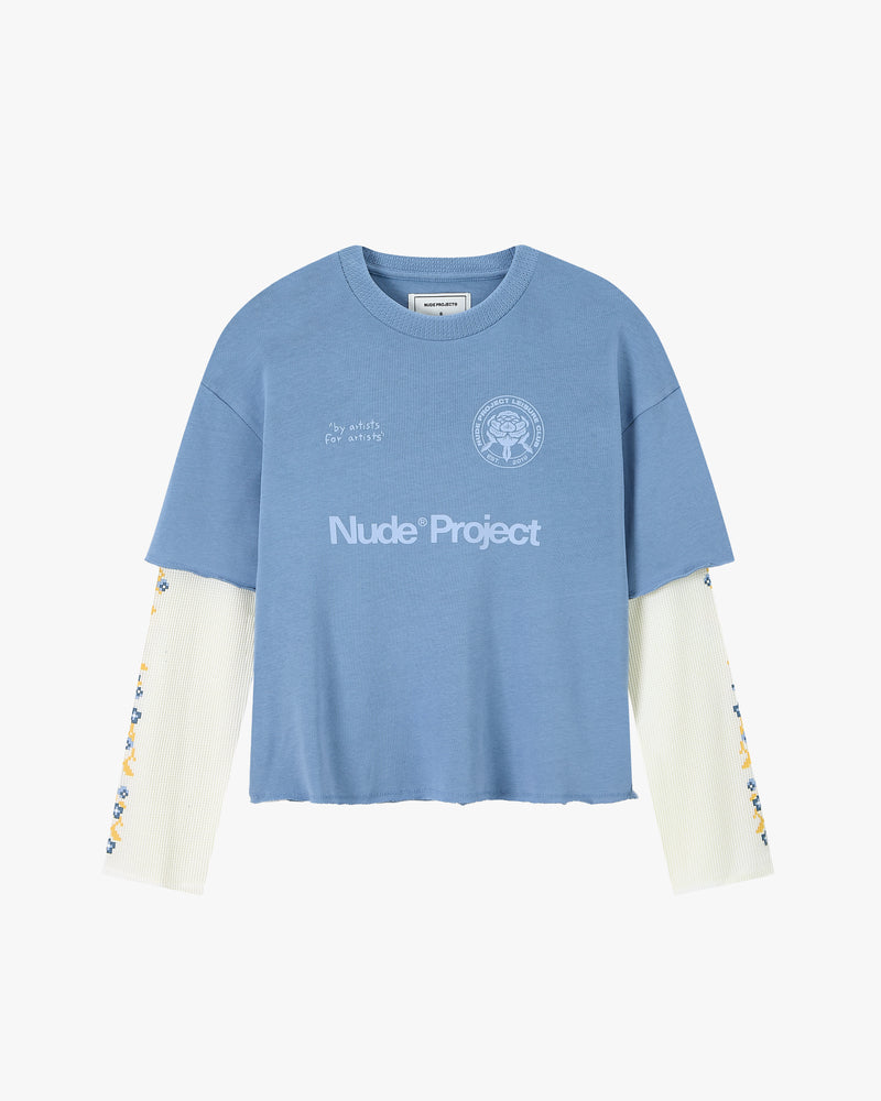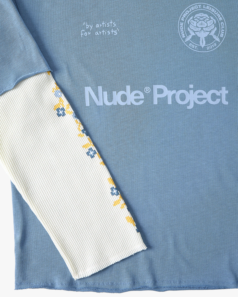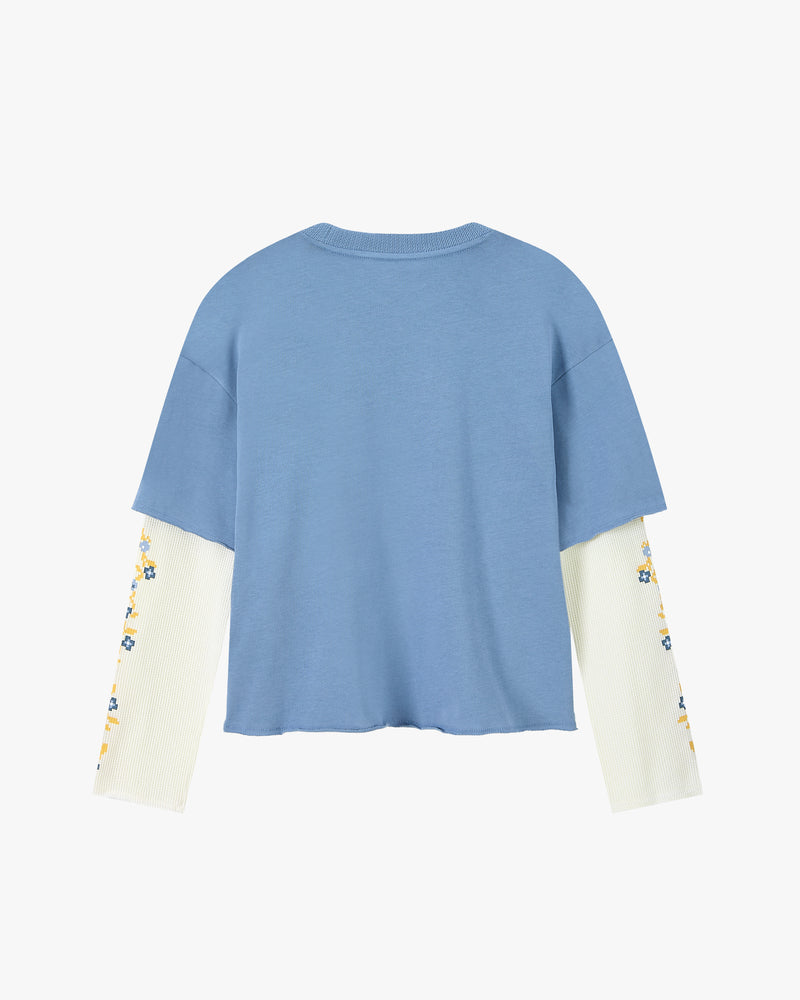 Fake long sleeve tee with mixed fabrics: waffle+ single jersey